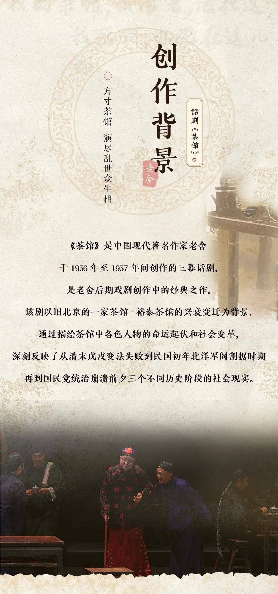 老舍茶馆并非一个实际存在的茶馆,而是指老舍先生于1956年创作的话剧茶馆以下是关于茶馆的简介创作背景与时间茶馆是现代文学家老舍于1956年创作的话剧,并于1957年7月初载于巴金任编辑的收获杂志创刊号1958年6月,该剧本由中国戏剧出版社出版单行本剧情内容剧作通过一个叫。