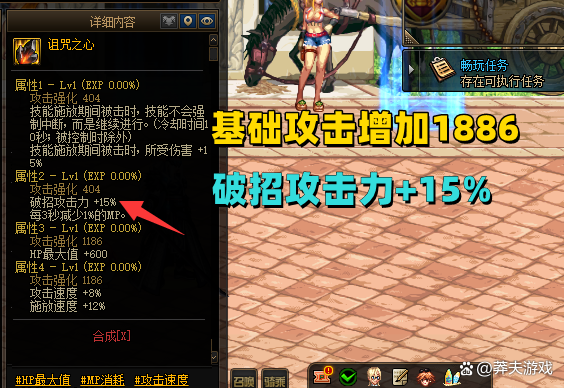 打开任务栏领取“穿戴耳环”任务,前往魔界区域副本击败勇士级的“兽人峡谷”和“红色魔女之森”中的BOSS,完成之后进入任务第二阶段领取第二阶段任务,按照任务要求收集材料,需要100万金币若干小晶块和5个精练的时空石即可开启耳环槽。