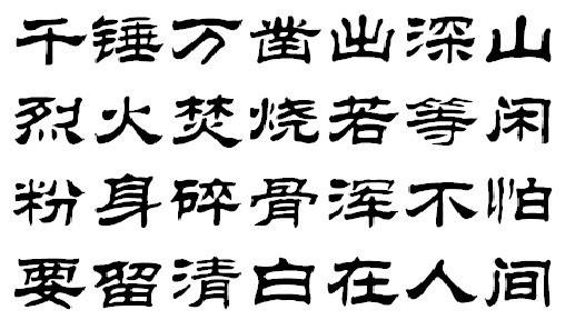 粉骨碎身全不怕 石灰吟 明代于谦 千锤万凿出深山,烈火焚烧若等闲万凿 一作万击粉骨碎身全不怕,要留清白在人间全不怕 一作浑不怕译文经过千锤万凿从深山里开采出来的石头,它把熊熊烈火的焚烧当作很平常的一件事即使粉身碎骨也毫不惧怕,只要把高尚的节操留在人世间。