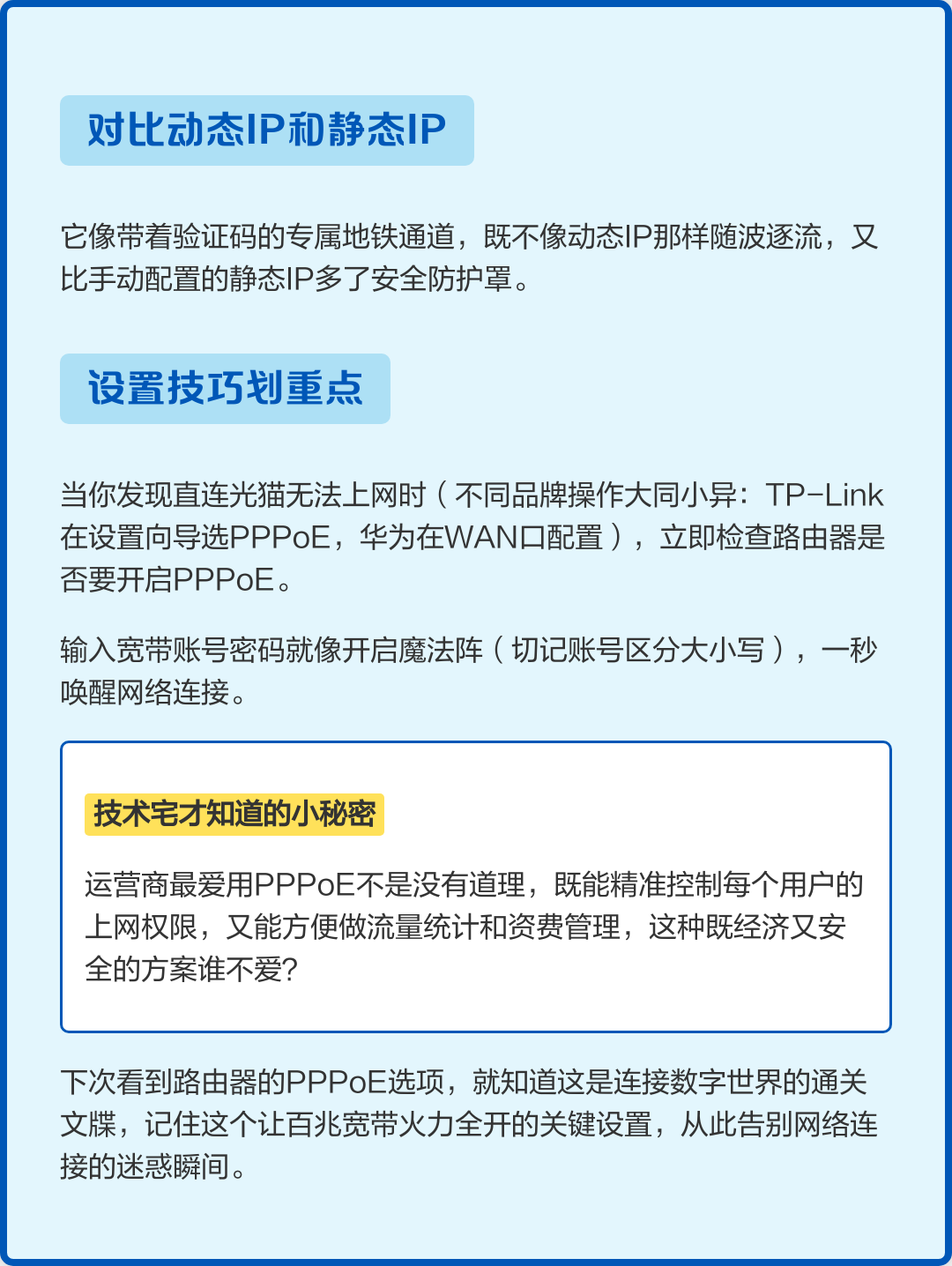 PPPoE的账号和密码是宽带上网业务的账户和密码以下是关于PPPoE账号密码的详细解释定义PPPoE的用户名和密码是开通宽带业务时,由宽带运营商提供给用户的作用这些账号和密码作为接入网络的验证凭据,用于通过PPPoE技术进行高速宽带网的个人身份验证访问,从而创建虚拟拨号连接,实现高速连接到Internet使用;网络机顶盒上的PPPOE 上的用户名和密码是宽带的用户名与密码,输入正确的用户名与密码后,网络机顶盒就可以通过宽带实现上网功能网络机顶盒简称STB技术是信息家电中至关重要的技术设备机顶盒的功能已从一个多频率的调谐器和解码器跃升为大量电影多媒体事件新闻等联机数据库的一个控制终端;PPPoE上网账号和PPPoE上网口令,就是办理宽带业务时,运营商提供给你的宽带账号和宽带密码上网账号,上网密码 如果你忘记了你的宽带账号和密码,可以通过下面的方法来解决1 办理宽带业务后,运营商会给你一个业务回执单,在回执单上面可以找到你的宽带账号宽带密码信息2 如果你保管不善;上网帐号这是你在申请ADSL宽带服务时,由宽带服务提供商分配给你的一个唯一标识,用于识别你的宽带账户上网密码这是与上网帐号相对应的密码,用于验证你的身份,确保只有授权用户才能使用该宽带账户上网在使用路由器进行PPPoE拨号上网设置时,你需要输入这些帐号和密码,以便路由器能够正确连接到宽带;1 PPPOE是点对点协议通过以太网的简称,它允许用户通过以太网连接到互联网2 PPPOE使用的用户名和密码是您的宽带接入账号和密码,这些信息在您注册宽带服务时提供,通常包含在服务单据中3 设置PPPoE时,您可以在路由器的设置向导中进行,或者在WAN广域网设置部分进行4 路由器的设置界面地址。